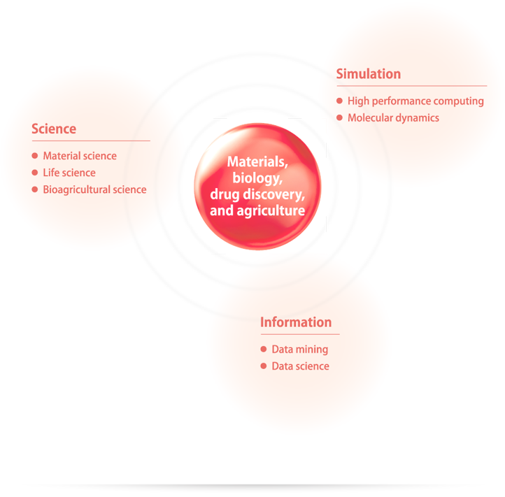 There is a dramatic increase in accumulated data on material information (atomic structure, functional group, physical properties, etc.) and biological information (gene/genome information, protein information, etc.).